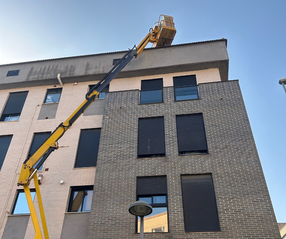El reto principal de este trabajo fue el acceso a la cubierta, que presentaba limitaciones de espacio y altura. Para garantizar la seguridad y precisión durante la instalación, se empleó una plataforma elevadora, lo que permitió ejecutar cada fase con el máximo control y cumplimiento de las normativas de prevención.