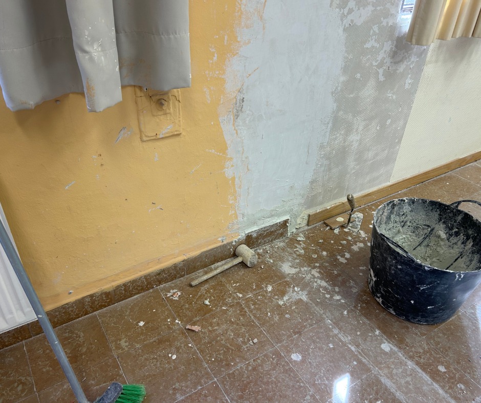 El proceso se desarrolló en varias fases: primero se realizó una inspección técnica de las paredes y planificación de las zonas de trabajo. Después se protegieron los elementos fijos, se repararon y masillaron grietas e imperfecciones, se lijaron las superficies y se aplicó una imprimación homogénea. Finalmente, se aplicaron dos manos de pintura para lograr una cobertura completa y un acabado impecable.